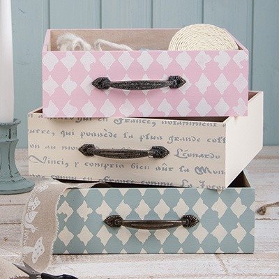 Um diesen Naturholzkistchen auf “alt” zu trimmen tauchst du den leicht feuchten Malschwamm in das Chalky Cremewachs braun und wischst über die gesamte Oberfläche.2 ![]()