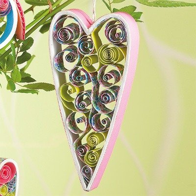 Anleitung in 1 Schritten Die runden Anhänger geben die Form vor. Aus Papierstreifen in den verschiedensten Farben formst du die Quilling-Kreise.