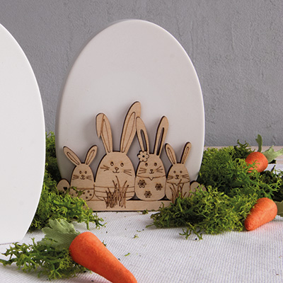 Klebe mit dem Klebefix-Pen die bemalten Holz-Blüten in Form eines Kranzes auf das Raysin-Ei.4 ![]()
