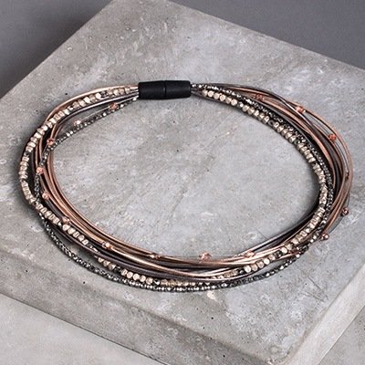 60 min Anleitung in 6 Schritten Rocailles Perlen in Kupfer, Metallic und Grau – nach Anleitung geknüpft – und du erhältst das schicke Armband. Und so geht’s: