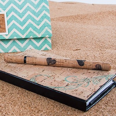 Zuschnitt herstellen: Korkstoff – 29 cm × 18 cm; Filzstoff – 29,5 cm × 18,5 cmDie Schnittmuster findest du im PDF der Bastelidee. Einfach herunterladen.