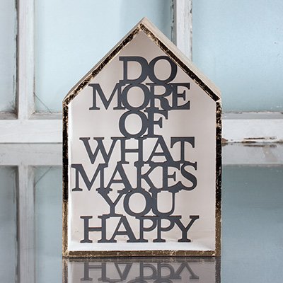 Metallring mit Holzschrift „Do more of what makes you happy“