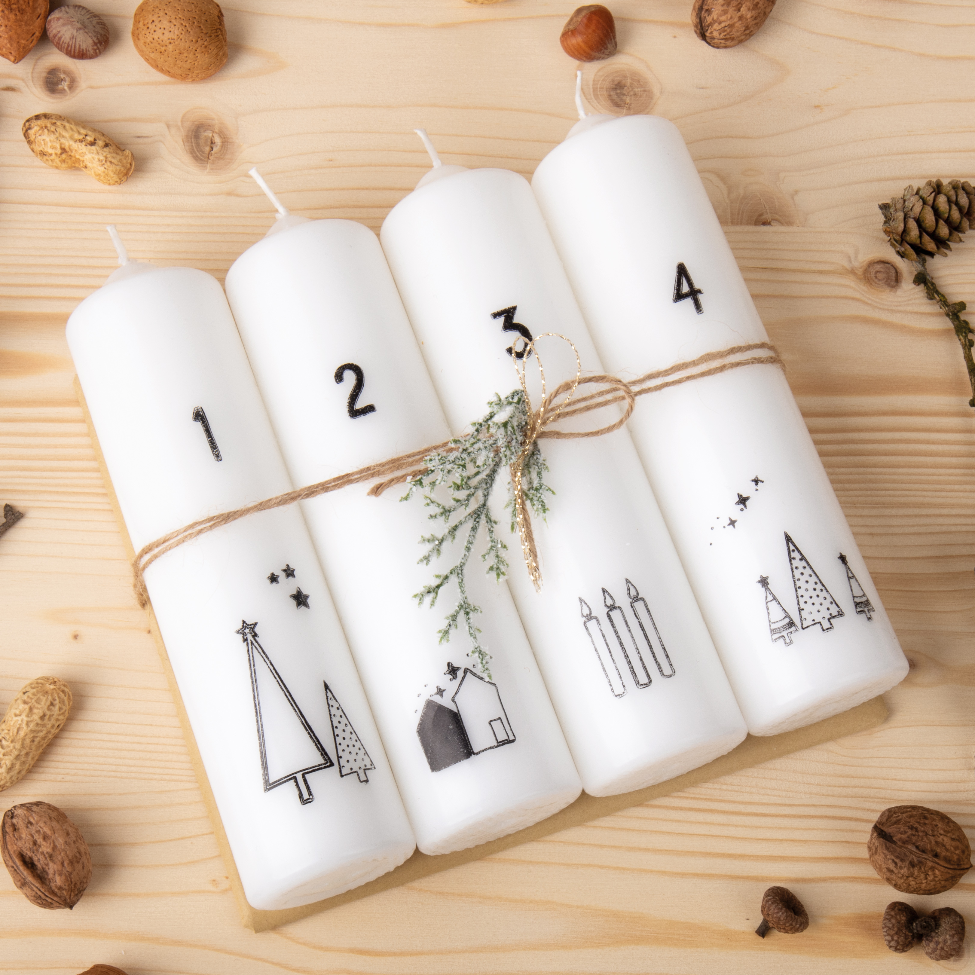Motivgrößen: z.B. Zahl 24 ca. 1,7 x 1,7 cm, Motiv „Baum mit Stern“ ca. 2,4 x 5,5 cm