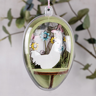 Mit wenigen Handgriffen zur fantasievollen Osterdekoration! Das transparente Plastik-Ei in der Größe 8 cm ist teilbar und kann mit nur einem Handgriff ganz leicht geöffnet und wieder geschlossen werden. Auf diese Weise kannst du das Ei mit tollen Accessoires deiner Wahl wie zum Beispiel Moos, Deko-Gras, Federn und vielem mehr füllen. Die integrierte Aufhänge-Öse macht das Ei gleichzeitig zum idealen Anhänger für Ostersträuße, Fensterdekorationen, Sträuchern und vielem mehr. Tolle Effekte erzielst du ebenfalls indem du das Ei bemalst, marmorierst oder mit Mosaik beklebst. Auch als Gießform für einen tollen Eierbecher aus Kreativ-Beton ist die Plastikform ideal geeignet – eine tolle Anleitung dazu findest du in unseren Bastelideen. Die kreativen Möglichkeiten sind vielfältig und grenzenlos! Tipp: befüllt mit Süßigkeiten, Geld oder lieben Ostergrüßen eignet sich das Plastik-Ei auch perfekt als Geschenk!