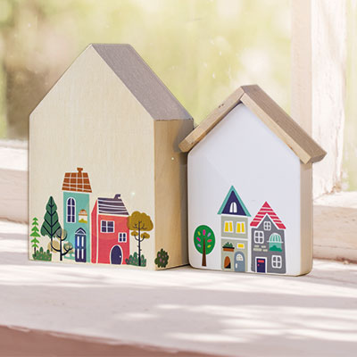 Once they are dry, the houses can be creatively designed - or alternatively coloured with colour pigments prior to casting. You could put a rubber label in the mould before casting - thus a message or motif can be cast in.