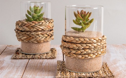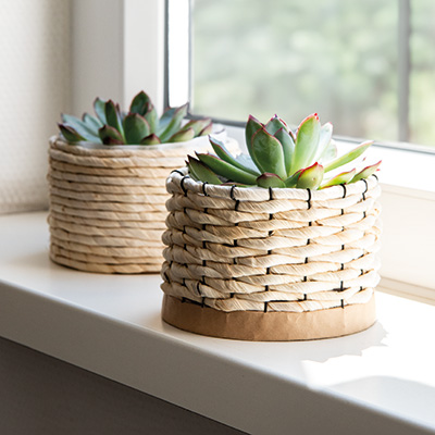180 minL'herbe de la pampa, le jonc de mer ou d'autres matériaux naturels t'incitent à créer des choses sans égal. Les cordes de jacinthes d'eau, d’algues, de maïs ou de paille se laissent facilement tisser, tresser, nouer, enrouler - les possibilités sont presque illimitées. Tu peux créer de nouveaux objets de décoration tendance ou donner une touche personnelle aux anciens. Et le meilleur dans tout cela? Toutes nos cordes et tous nos rubans sont des produits naturels, fabriqués à partir de matières premières durables et rapidement renouvelables. Faire de l'artisanat en harmonie avec la nature est tout à fait dans l'air du temps! Le tressage viennois et le tressage en rotin sont à la fois traditionnels et modernes. Ils font la base de tes projets artisanaux à l'aspect naturel: des photophores en verre, des boîtes de stockage ou de jolis plateaux que tu pourrais rehausser avec ces matériaux naturels. Les tresses sont faciles d'usage: tu peux les aplatir à l'état sec avec un fer à vapeur et un chiffon humide ou les tremper dans de l'eau afin de leur donner la forme souhaitée. Elles se laissent aussi facilement découper ou coller. Tu peux également les peindre ou les broder. Fais preuve de créativité et laisse-toi inspirer par la nature!