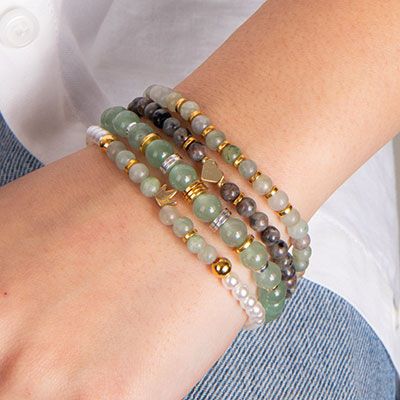 Tu aimes changer de style et concevoir tes bijoux avec une touche personnelle? Avec notre concept de bijoux créatif "Click, Mix & Match", cela peut se faire maintenant en toute simplicité! Fais ton choix parmi de nombreuses chaînes à maillons branchées en or et argent – la base parfaite pour la conception de colliers et de bracelets orginaux. Grâce à l'astucieux système de fermoirs mousquetons, tu peux facilement combiner tes perles préférées avec des pierres semi-précieuses ou des perles en verre ciré. Et le meilleur dans tout cela: tu peux accrocher ou remplacer le tout en un tournemain! Envie d’apporter une touche personnelle? Alors ajoute quelques breloques! Ton bijou bien unique est prêt à être porté et tu peux le changer à tout moment. Les possibilités sont infinies! Qu'il s'agisse d'un look décontracté pour le quotidien ou d'un événement spécial qui exige un look chic - avec "Click, Mix & Match", aucune limite n'est imposée à ta créativité. Donne libre cours à ton imagination et fais des combinaisons à ta guise avec des couleurs et des styles. Laisse ton bijou parler de lui-même. La créativité n’a jamais été plus simple – démarre dès maintenant et découvre tout le plaisir de la création de bijoux!