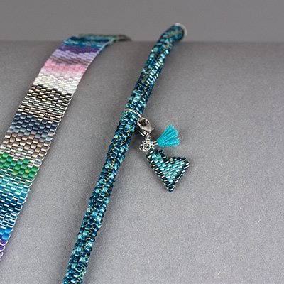 Enfiler 24 rocailles Delica sur 1,50 m de fil à enfiler. Fais le changement de couleurs selon ton imagination.Tu trouveras les instructions étape par étape dans le PDF de l'idée de l'artisanat. Juste télécharger.