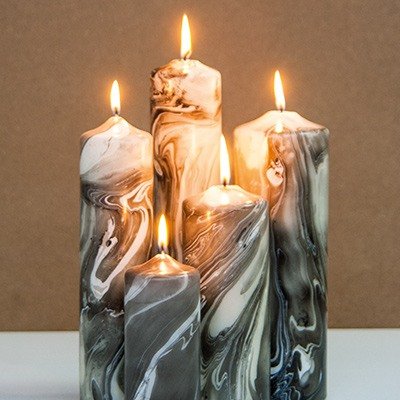Une fois que la cire colorée a séché sur la bougie, tu peux continuer avec une autre couleur de l’autre côté de la bougie.Astuce: Les restes de cire peuvent être conservés avec le couvercle fermé jusqu’à la prochaine utilisation ou tu peux verser ta propre bougie avec les restes de cire. Utilise pour cela par exemple le moule pour bougie Bougie longue (réf. n° 31 642 000).
