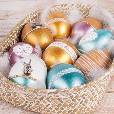 Tu coupes les oreilles dans le tissu métallique à l’aide du patron (créer un gabarit de coupe). Tu colles les oreilles dans le trou supérieur de la boule de bois brut avec de la colle pour textile. Pour finir, tu colles le pompon blanc sur le dos de la grande boule de bois brut en utilisant la colle multi.Tu trouveras les patrons dans le PDF de l'idée de l'artisanat. Juste télécharger.